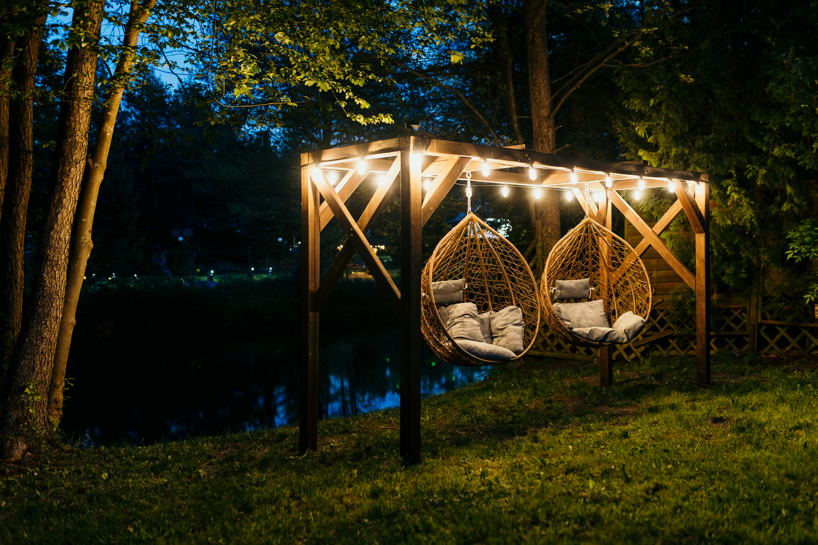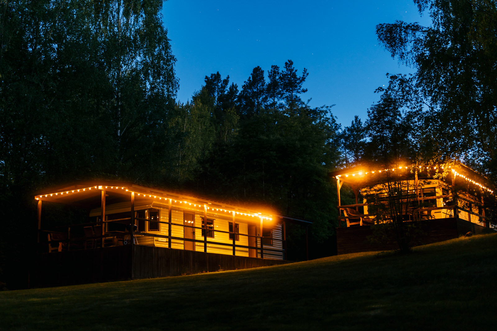 Wieczory można spędzić w strefie relaksu (ognisko, ławeczki oraz podwieszane siedzenia) ciesząc się ciepłem płomieni i spokojem kaszubskiej natury.
